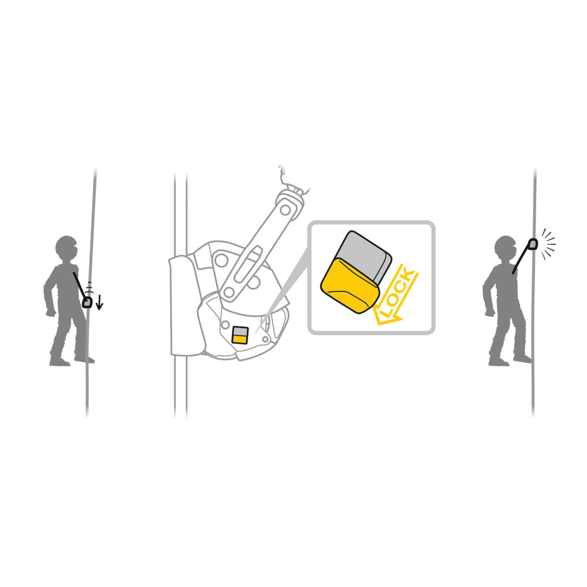 Entegre kilitleme fonksiyonu, kullanıcının potansiyel düşme mesafesini azaltmak için cihazı hareketsiz hale getirmesine olanak tanır. Şiddetli rüzgar durumunda, bu fonksiyon halatın yukarı doğru savrulmasını da önler.