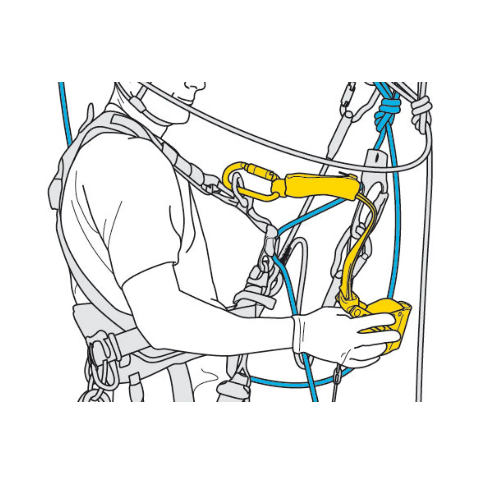 - Halattan uzakta çalışmak için bir enerji emici ile kullanılır: ASAP’SORBER veya ASAP’SORBER AXESS. İkincisi, iki kişilik kurtarma durumlarında 250 kg’a kadar yükler için kullanılabilir.